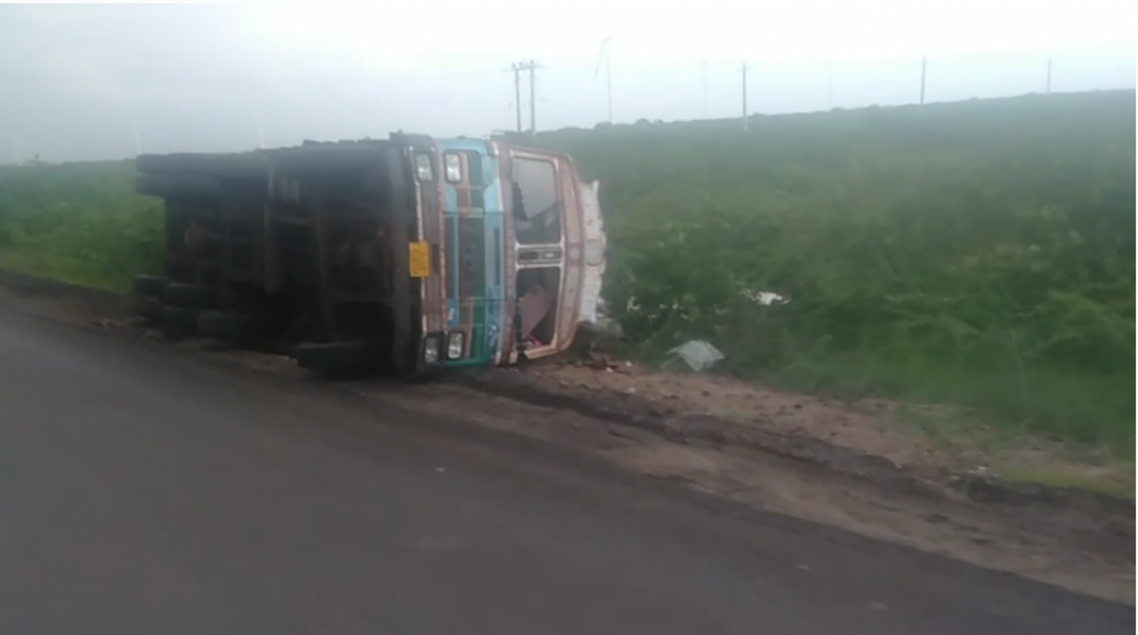 અબડાસા ના જખૌ ગામે નમક થી ભરેલો ટ્રક પલ્ટી ખાઇ ગઈ