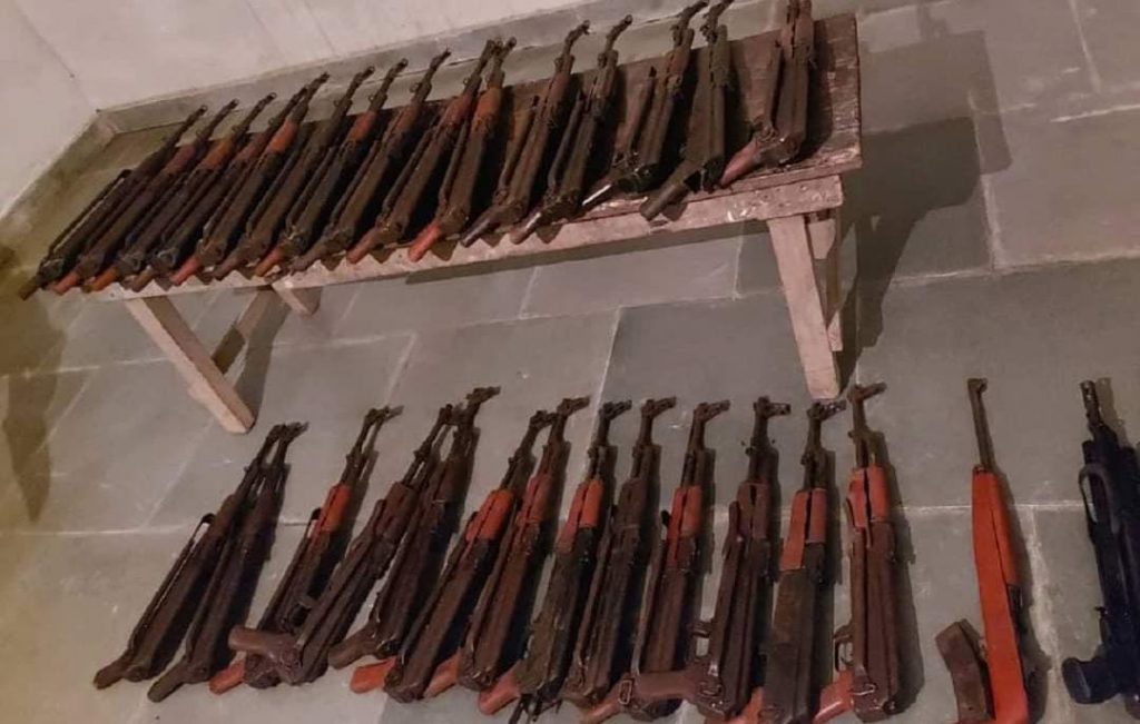 બોર્ડર સિક્યુરિટી ફોર્સે ઉગ્રવાદીઓ પાસેથી 28 AK-47 રાઇફલો, એક AK-74 રાઇફલ, એક અમેરિકન શૂટિંગ ગન, 28 મેગેઝિન અને 7800 કારતૂસ જપ્ત કર્યા