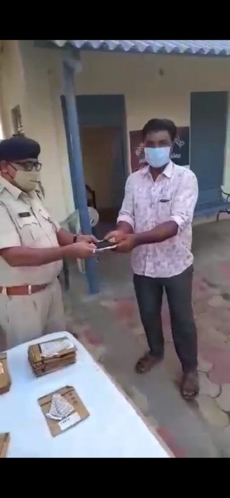 માંડવી મરીન પોલીસ સ્ટેશનના પી.આઈ. એમ એન ચૌહાણ સાહેબના માર્ગદર્શન હેઠળ માંડવી મસ્કા પોલીસ ચોકી મધ્યે સવારે તેમજ સાંજના સમયે જરૂરત મંદ માણસોને માસ્ક વિતરણ કરવામાં આવ્યા હતા.આ અંગે આર ડી ગરવા પી.એસ.આઈ એડી ઘાસુરા તેમજ સ્ટાફ લોકો ઉપસ્થિત રહ્યા હતા. મોહિતભાઈ ફલજીભાઈ મહિપાલસિંહ અશ્વિનભાઈ તેમજ નયનાબેન વર્ષાબેન આશાબેન ઉપસ્થિત રહ્યા હતા. (તસ્વીર દર્શન સોની દયાપર )