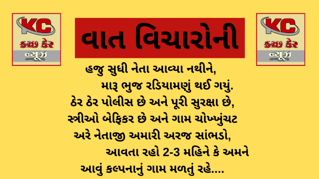 Gujarat વાત વિચારની 5 years ago Kutch Care News Continue Reading Previous રાજકોટ-ગોંડલ હાઇવે પર કિસાન પમ્પની પાસે અચાનક ગેસની પાઇપલાઇનમાં લાગી આગNext અમદાવાદમાં લાગી ફરી આગ, કઠવાડાની કેમિકલ ફેક્ટરીમાં આગ લગતા 10 ફાયર ફાઇટર ઘટનાસ્થળે આવી પહોંચ્યા More Stories Breaking News Gujarat India Kutch નોકરીની શોધમાં ઘરેથી નીકળેલી ત્રણ સગીરાઓ દિલ્હીથી હેમખેમ મળી,પોલીસે કરાવ્યું પરિવાર સાથે મિલન 7 hours ago Kutch Care News Breaking News Gujarat India Kutch PM મોદીનો મલેશિયા પ્રવાસ:”વિશ્વ ભારતને ભરોસાપાત્ર ભાગીદાર તરીકે જોઈ રહ્યું છે” 8 hours ago Kutch Care News Breaking News Gujarat Kutch પ્રાઇવેટ ટ્યુશન ક્લાસમાં વિદ્યાર્થીઓની સુરક્ષા માટે સરકાર અને તંત્ર કડક 9 hours ago Kutch Care News