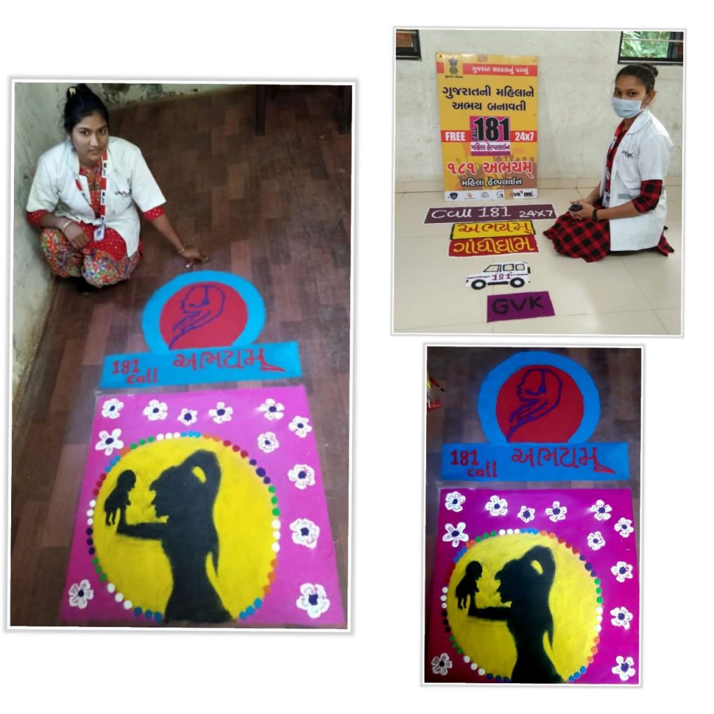 “બેટી બચાઓ , બેટી પઢાઓ” ની રંગોળી દ્વારા દીપાવલી પર્વની શુભકામના પાઠવતી કચ્છ ૧૮૧ અભયમ ટીમ