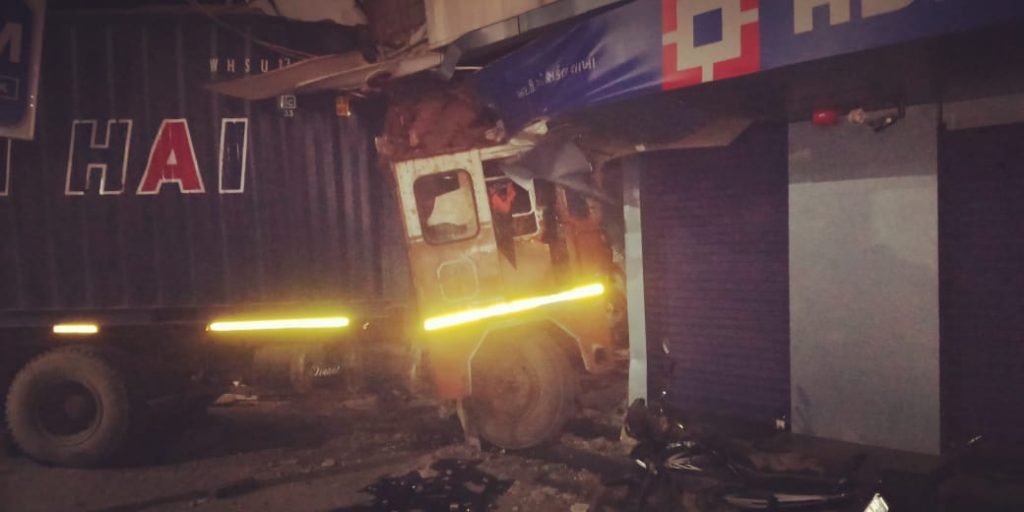 ભુજના આરટીઓ સર્કલ પાસે ભુજીયા રીંગરોડ તરફથી આવતી ટ્રકે સર્કલ નજીક ટુ વ્હીલર અને ફોર વ્હીલર ટક્કર મારી સર્કલ પાસે આવેલા એચડીએફસી બેન્કના એટીએમ માં ઘૂસી. ટુ વ્હીલર અને ફોર વ્હીલરના ચાલક ને તેમજ એચડીએફસી સિક્યુરિટી ગાર્ડ ને ઇજાઓ થતા સારવાર અર્થે ભુજ જી.કે માં ખસેડાયા. વધુ તપાસ પોલીસ ચલાવી રહી છે