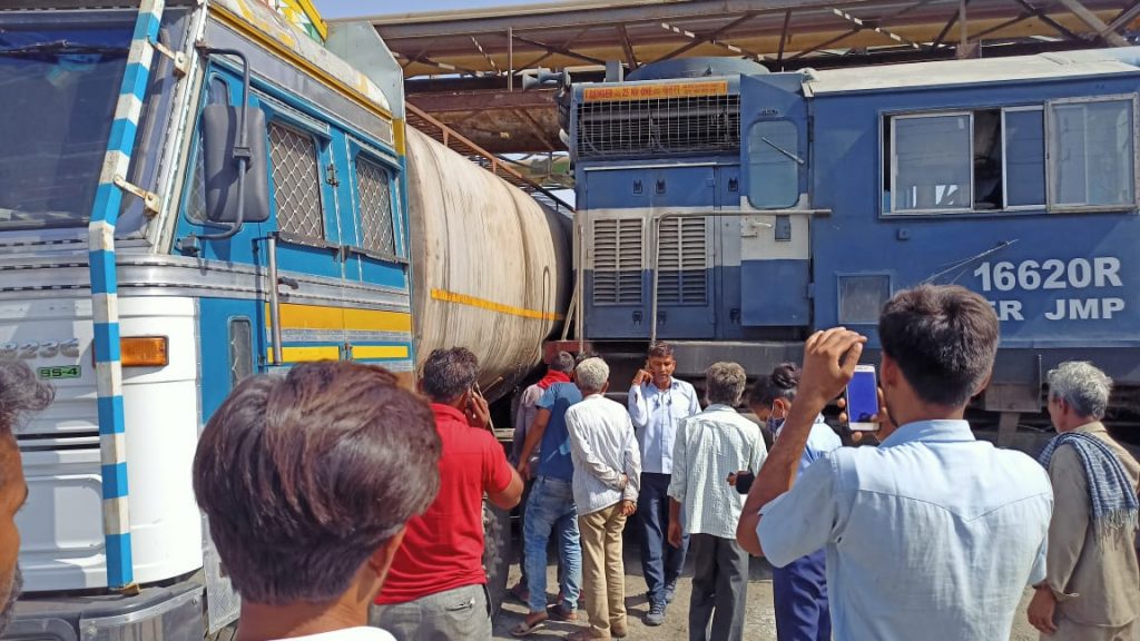મીઠાપોર્ટ ના ગેટ પાસે બન્યો બનાવ ટ્રેનના પાટા ઉપર ટ્રક આવી જતા થઈ ટક્કર ટ્રેનના ડ્રાઇવરની સમયસૂચકતાના કારણે મોટો અકસ્માત ટળ્યો.