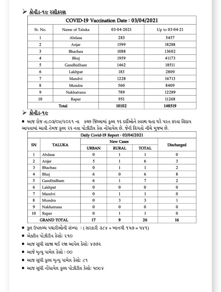 Kutch તા.૦૩/૦૪/૨૦૨૧ ના કચ્છ જિલ્લામાં કુલ્લ ૧૬ દર્દીઓને સ્વસ્થ થતા ઘરે પરત ફરવા વિદાય આપવામાં આવી તેમજ કુલ્લ ૨૬ નવા પોઝીટીવ કેસ નોંધાયેલ છે 5 years ago Kutch Care News Continue Reading Previous તા.૦૨/૦૪/૨૦૨૧ ના કચ્છ જિલ્લામાં કુલ્લ ૧૬ દર્દીઓને સ્વસ્થ થતા ઘરે પરત ફરવા વિદાય આપવામાં આવી તેમજ કુલ્લ ૨૫ નવા પોઝીટીવ કેસ નોંધાયેલ છેNext તા.૦૫/૦૪/૨૦૨૧ ના કચ્છ જિલ્લામાં કુલ્લ ૧૯ દર્દીઓને સ્વસ્થ થતા ઘરે પરત ફરવા વિદાય આપવામાં આવી તેમજ કુલ્લ ૩૦ નવા પોઝીટીવ કેસ નોંધાયેલ છે More Stories Breaking News Gujarat Kutch તબીબી ભથ્થાનો વિકલ્પ બદલવા માંગતા પેન્શનરોએ તિજોરી કચેરી ખાતે અરજી કરવાની રહેશે 10 hours ago Kutch Care News Breaking News Kutch ભુજની રમત ગમત કચેરીમાં સ્પોર્ટ્સ કીટ છેલ્લા ઘણા વર્ષોથી ધૂળ ખાઈ રહી છે 10 hours ago Kutch Care News Breaking News Gujarat Kutch ગુનાહિત ઈતિહાસ ધરાવતા અસામાજિક તત્વો વિરુધ્ધ કરવામાં આવેલ કડક કાર્યવાહી 11 hours ago Kutch Care News