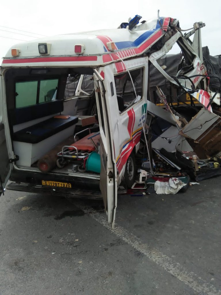 હાઇવે ઉભેલ ટ્રક પાછળ ખાનગી એમ્બ્યુલન્સ અથડાતા અકસ્માત