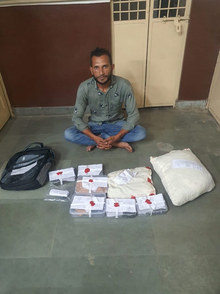 હાલ રાજયમાં પોલીસ મહાનિર્દેશક સી.આઇ.ડી. ક્રાઇમ અને રેલ્વેઝ, ગુ.રા. ગાંધીનગરનાઓ તરફથી કેફી અને માદક પદાર્થોના સેવનની પ્રવૃતિ નેસ્ત નાબુદ કરવા તેમજ કેફી અને માદક પદાર્થોના સેવન, હેરફેર, વેપારની પ્રવૃતિને સદંતર રીતે ડામવા માટે રાજયમાં તા.૦૧/૦૬/૨૦૨૧ થી ૨૧/૦૬/૨૦૨૧ સુધી દિન- ૨૧ ની એન.ડી.પી.એકટ ૧૯૮૫ હેઠળ સ્પે. ડ્રાઇવ (ઝુંબેશ) રાખેલ હોઇ જે અન્વયે જે.આર.મોથાલીયા, પોલીસ મહાનિરીક્ષક, સરહદી રેન્જ, ભુજ તથા સૌરભ સિંઘ , પોલીસ અધિક્ષક, પશ્ચિમ કચ્છ-ભુજ નાઓએ પશ્ચિમ કચ્છ-જીલ્લામાં એન.ડી.પી.એસ. નાં કેસો શોધી કાઢવા સુચના આપેલ હોય જે અન્વયે એસ.ઓ.જી. પશ્ચિમ કચ્છ-ભુજનાં ઇન્ચાર્જ પોલીસ ઇન્સ્પેકટર એ.આર.ઝાલા નાં માર્ગદર્શન હેઠળ એસ.ઓ.જી. સ્ટાફનાં પો.હે.કો. નરેન્દ્રસિંહ જેઠુભા ઝાલા નાઓને ખાનગી રાહે મળેલ સચોટ બાતમી હકીકત આધારે તુરંત વર્ક આઉટ કરી મજકુર ઇસમ અનીશ ઉફે હશન સલીમ આરબ, ઉવ. ૨૯, રહે. હરીનગર, શેરી નં. ૩, મુન્દ્રા-કચ્છ વાળાને તેનાં કબ્જાનાં રહેણાંક મકાનમાંથી માદક પદાર્થ ગાંજો પ કીલો ૮૬૫ ગ્રામ કી.રૂ.૫૮,૬૫૦/- તથા મોબાઇલ ફોન- ૦૧ કી.રૂ. ૫૦૦/- એમ કુલ રા. ૫૯,૧૫૦/- ના મુદ્દામાલ સાથે આરોપીને પકડી પાડી કાયદેસરની કાર્યવાહી કરવામાં આવેલ છે.