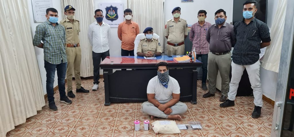 મ્હે.પોલીસ મહાનિરીક્ષક જે.આર.મોથલીયા સાહેબ,બોર્ડર રેંજ,ભુજ તથા મયુર પાટીલ સાહેબ, ઇન્ચાર્જ પોલીસ અધિક્ષક,પશ્ચિમ કચ્છ,ભુજ તથા નાયબ પોલીસ અધિક્ષકશ્રી જે.એન.પંચાલ સાહેબની સુચના મુજબ કેફી અને માદક પદાર્થોના સેવનની પ્રવુતિ નેસ્ત નાબુદ કરવા માટે સુચના કરેલ અને કેફી માદક પદાર્થોના સેવન હેરફેર વેપારની પ્રવુતિને સદંતર ડામવા માટેની ડ્રાઇવ હાલમાં ચાલુમાં હોય. જે અનુસંધાને સર્વેલન્સ સ્ટાફના માણસો પેટ્રોલીંગમાં હતા. તે દરમ્યાન એ.એસ.આઇ પંકજકુમાર.આર.કુશવાહા નાઓને ખાનગી રાહે બાતમી હકિકત મળેલ કે ધીરજ શિવજીભાઇ ભાનુશાળી પોતાના કબ્જાની બ્લુ કલરની એક્સેસ જેના રજી નં.જી.જે.૧૧૨.ઇ.એચ.૯૫૭૮ વાળીમાં માદક પદાર્થ ગાંજો રાખી નળવાળા સર્કલ વિસ્તારમાં ફરે છે તેવી સચોટ અને ભરોસાપાત્ર બાતમી હકિકત આધારે ભુજ શહેર બી.ડીવીજન પો.સ્ટે.ના પો.ઇન્સ. આર.ડી.ગોજીયા નાઓએ ટીમ સાથે તુરંત વર્ક આઉટ કરી ટીમ સાથે રેઇડ કરતા ધીરજ શિવજીભાઇ ભાનુશાળી ઉ.વ.૨૪ રહે-ઝુરા તા.ભુજ વાળાને ૧.૦૪૯ કિ.ગ્રા. માદક પદાર્થ ગાંજા કિ.રૂ.૧૦,૪૯૦/- વાળા સાથે આરોપીને પકડી પાડેલ હોઇ મજકુર આરોપી વિરૂધ્ધ એન.ડી.પી.એસ.એક્ટ મુજબ કાયદેસરની કાર્યવાહી કરવામાં આવેલ મજકુર ઇસમને નામદાર કોર્ટની ગાઇડલાઇન મુજબ કોવિડ-૧૯ સારૂ મોકલાવી આપતા મજકુરનો કોવિડ-૧૯ નો રીપોર્ટ નેગેટીવ આવતા આજરોજ ક.૦૧:૩૦ વાગ્યે અટક કરેલ છે. અને આગળની તપાસ પો.સબ.ઇન્સ. વી.આર.ઉલવા નાઓ ચલાવી રહેલ છે.
