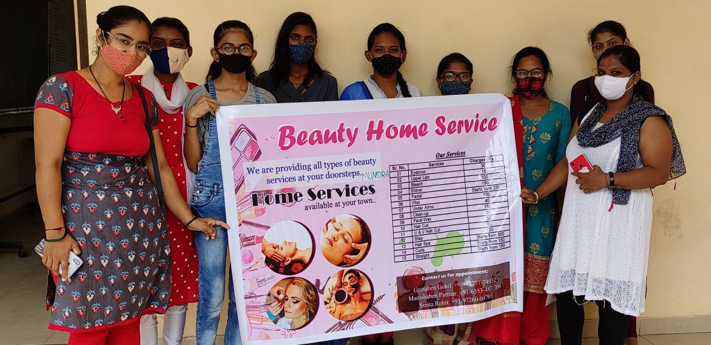 અદાણી સ્કિલ ડેવલોપમેન્ટે મહિલાઓને રોજગારી મળે એ માટે તાલીમ તો આપી પણ કોરોનામાં રોજગારીની સમસ્યા સર્જાઈ, પરંતુ, સ્કિલ ડેવલોપમેન્ટનું કામ તાલીમ સાથે આજીવિકા પ્રાપ્ત થાય એ માટે તમામ સંશાધન કામે લગાડી, મુંદ્રા વિસ્તારની કૌશલપ્રાપ્ર્ત બહેનોનું જુથ બનાવી ‘બ્યુટી સર્વિસ એટ હોમ’સેવાનો રોજગારી માટે નવતર પ્રયોગ શરૂ કર્યો છે. આ પ્રયોગના પ્રતિસાદ સ્વરૂપે રોજગારીની વિકટ પરીસ્થિતિમાં પણ પ્રતિમાસે ઓછામાં ઓછા પાંચ હજાર રૂપિયા બહેનો રળી લે છે. ભુજ અને મુંદ્રા વિસ્તારના અદાણી સ્કિલ ડેવ.ના કચ્છ જિલ્લાના ક્લસ્ટર હેડ સાગર કોટકે કહ્યું કે, કોરોનામાં બહેનોની રોજગારી ઘટી ગઈ છે. તેથી આ સંસ્થાએ નવું વિચારીને બ્યુટી સર્વિસ એટ હોમ અંતર્ગત તાલીંબધ્ધ ૧૦-૧૦ બહેનોનું જુથ બનાવ્યું છે. જે ઘરે ઘરે જઇને પાર્લરની સર્વિસ આપે છે. જૂનથી આ સેવા કાર્યરત છે. અને તેનો વ્યાપ વધી રહ્યો છે. બહેનોને રોજગારી મળે એ માટે માત્ર જુથ બનાવીને સંતોષ માનીને બેસી રહેવાને બદલે સ્વરોજગારી માટે આનુષંગિક જ્ઞાન આપવાનું પણ અદાણી ફાઉંડેશન અને સ્કિલ ડેવલોપમેન્ટે કરી નિષ્ણાંતોની મદદ લીધી એ મુજબ તમામ વ્યવસ્થાને ફાઉંડે. ના સી.એસ.આર. હેડ પંક્તિબેન શાહે આ વ્યવસ્થાને સેલ્ફ હેલ્પ ગ્રૂપ(એસ.એચ.જી)માં ફેરવી ગ્રૂપને ‘સુંદર સહેલી ગ્રૂપ’ નામ આપી બહેનોને પ્રોત્સાહન મળી રહે તે માટે તાલીમ આપી. બ્યુટી થેરાપીસ્ટની તાલીમ ડીમ્પલ પીઠડીયાએ આપી અને પ્રફુલ્લ ગરવાએ સોશિયલ મીડિયા ઉપર માર્કેટિંગ કરવાનું કૌશલ આપ્યું એ પ્રકારે કોરોનામાં રોજગારી મળતી થઈ.