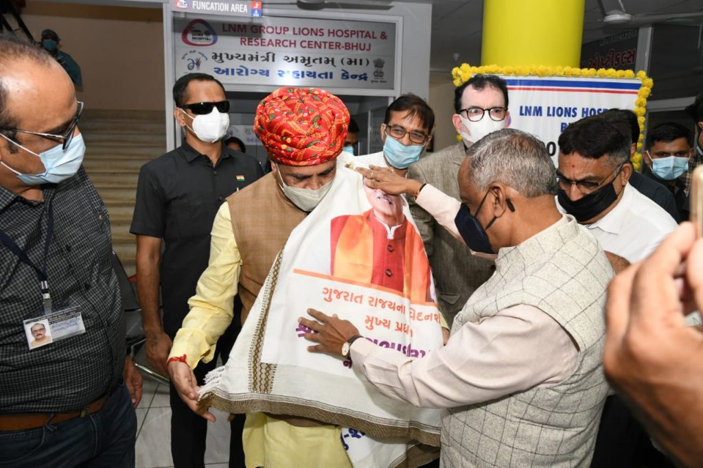 મુખ્યમંત્રી વિજયભાઇ રૂપાણીએ ભુજ ખાતે ૧.૨૫ લાખ દર્દીના વિનામૂલ્યે ડાયાલીસીસ પૂર્ણ કરતી LNM ગ્રુપ લાયન્સ હોસ્પિટલ અને રીસર્ચ સેન્ટરની શુભેચ્છા મુલાકાત લીધી હતી.