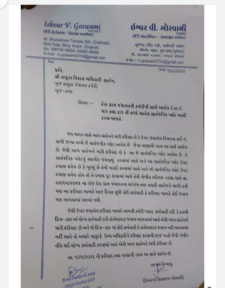 Breaking News Kutch ભુજ તાલુકાનાં કેરા બસ સ્ટેશન પાસે સર્વે નં.5/1 અને 4/1 ની વચ્ચે આવેલ સાર્વજનિક પ્લોટ……….. 5 years ago Kutch Care News Continue Reading Previous મિરઝાપરની રિવાદિત કરોડો રૂપિયાની જમીન ઉપર મીઠાઇ ખાવાની પડી શકે છે મોંઘીNext ભાજપના સાસંદ પરબત પટેલ વિકાસની ઝલકનો નજારો થયો શોસિયલ મીડિયામાં વાયરલ More Stories Breaking News Crime Gujarat સુરતના મંદિરમાં ચોરી કરતા પહેલા ચોર માતાજીના પગે પડ્યો, પછી દાનપેટી લઈને ફરાર 4 hours ago Kutch Care News Breaking News Gujarat ગુજરાતને મળી વધુ એક વંદે ભારત ટ્રેન 5 hours ago Kutch Care News Crime Kutch સામખિયાળી-મોરબી ધોરીમાર્ગ પર અજાણ્યા વાહનની હડફેટે યુવાનનું મોત 5 hours ago Kutch Care News
