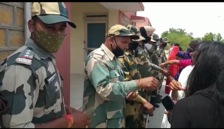 જીગર રાજપૂત,ભરત સોલંકી, રાજુભાઈ પીરાણા, રણછોડભાઈ સુથાર, દિપક વાવીયા,અવિનાશ પ્રજાપતિ, અમિતભા ગઢવી, મહેન્દ્ર સુથાર,નીલીબેન આહીર વિગેરે ઉપસ્થિત રહ્યા હતા સરહદ પર ફરજ બજાવતા બીએસએફ ના જવાનો ને તિલક કરી મોઢું મીઠું કરાવી ને બહેનો એ રાખડી બાંધી હતી આમ આજે સરહદ ના સ્ંત્રીઓ ને રાખડી બાંધવા સમયે ભાવુક દ્રશ્યો જોવા મળ્યા હતા આમ ભાઈ બહેન ના પવિત્ર તહેવાર ની આજે ઉજવણી કરવામાં આવી હતી