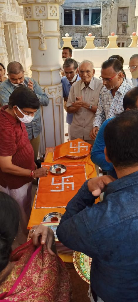 બિજા દિવસે શ્રાવણ વદ-3- ને તા:- 25-8-2021 ને બુધવારના રોજ “ગુરુમંદિર” ની 17 મી વાષીઁક વષઁગાંઠ ની ભવ્ય ઉજવણી આનંદ ઉત્સાહ પૂવઁક કરેલ આ દિવસે જિનેન્દ્ર અભીષેક ગુરુપૂજા તથા જિનવાણી પૂજા બાદ અહિંસા પરમો ધમઁ ની ધમઁધજા નું “ગુરૂમંદિર” પર વાજતે ગાજતે ધ્વજારોહણ કરવામાં આવેલ અને સારાયે વિશ્વમાં મંગલતા પ્રસરે તે માટે પૂ.ગુરૂદેવ નું માંગલીક શ્રવણ અને વ્હાલા પૂ.કહાન ગુરુદેવની શ્ર્વેત સંગેમરમર પ્રતિકૃતિ ની પાવન પધરામણી ના તથા ષટ્ખંડાગમ શાસ્ત્ર તથા સમયસાર પંચ પરમાગમ સ્થાપીત જિનવાણી ના મંગલ વધામણાં તથા તત્વરસ થી તરબોળ પૂ.કહાન ગુરૂદેવ નું પ્રવચન, અને પ્રભાવના સંઘજમણ નું આયોજન કરવામાં આવેલ, સાંજે જ્ઞાની ધર્માત્મા ની સમુહ ભકિત કરી આરતી ઉતારવામાં આવેલ આ ઉત્સવમાં બહાર ગામ થી ઘણાં મુમુક્ષુ પધારેલ અને લાભ લીધેલો આ રીતે બે-દિવસ સહું ભકતજનો એ આનંદ ઉત્સાહ થી ધમઁ લાભ લીધેલ ઉત્સવ નિમિત્તે “ગુરુમંદિર” ને આકષઁક અને ભવ્ય અનોખી રીતે ડેકોરેશન કરવામાં આવેલ….