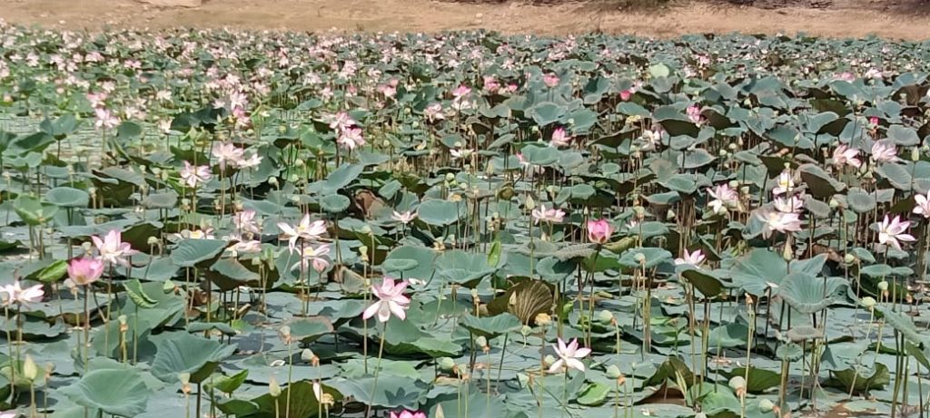 પ્રકૃતિના સૌંદર્યને વધુ એક ઝલક કચ્છ જિલ્લાના નખત્રાણા તાલુકાના મથલ ગામના તળાવમાં પ્રકૃતિ શણગાર કર્યું હોય તેવું લાગી રહ્યું છે તળાવમાં ઓછા પાણીને કારણે વધુ પ્રમાણ માં કમળો નું નિર્માણ થઇ ચૂક્યો છે ખૂબ જ સુંદર દ્રશ્ય લાગી રહ્યું છે જોનારાઓને ખૂબ જ આનંદ આવી રહ્યો છે સામાજિક અગ્રણી રમજાન કુંભાર સાથે વાત થતાં જાણવા મળ્યું કે સવાર-સાંજ આ કુદરતનો સૌંદર્ય જોવા માટે લોકો સવાર સાંજ ઉમટે છે અને આ સૌંદર્યને નિહાળે છે અને ત્યાં રહેલ પાણીમાં માછલીઓ ને બિસ્કીટ લોટ ના ના ગોટા બનાવી આપવામાં આવે છે