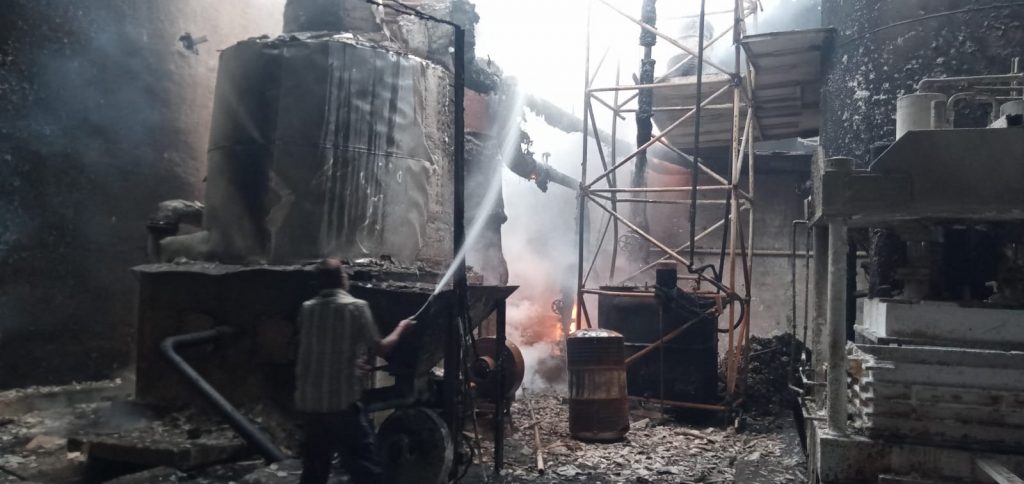 સિહોર G.I.D.C. No. 4 માં આવેવ A.K .ANUSULATIONS નામ ની મીલ માં સવારે 8:00 વાગયા આગ લાગી હતી