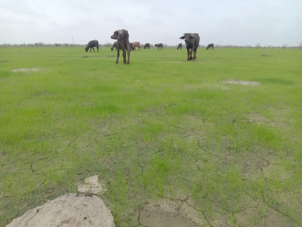 સામન્ય વરસાદ થતાં બની ની જમીન એ જેમ લીલો ચાદર ઓઢી લીધું હોય એવો ધ્રાશયા જોવા મેડ છે ડીએચઆરલીધુ છે બની ના પશુઓ એ પોતાના જીવ નુ વિશ્વાસ મૂકી દીધું હતો પણ કુદરત એ પસુ ના અવાજ પર મહેર કરી ને પાછો નવું જીવતદાન આપ્યું હોય તેવું ફોટા મા લાગી રહ્યો છે પશુ મા પણ ગાસ જોય મસ્તી ઉભરી આવેલ હતી