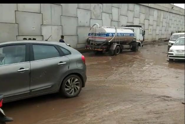વેરાવળ-શાપર ના સર્વિસ રોડ મા મસમોટા ખાડાઓ જેમાં વરસાદી પાણી ભરાતા વાહનચાલકો ને પડતી હાલાકી જેમાં અકસ્માત થવાનો પણ ભય..