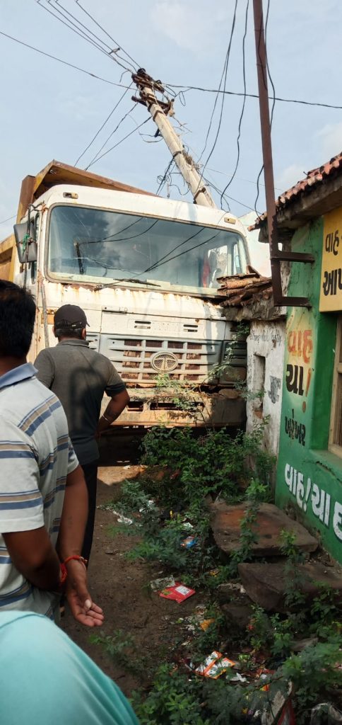 બળદિયા ગામે એક ટ્રેલર મકાન માં ગુસી ગયું હતું જેમાં મકાન ને નુકસાન થયું હતું