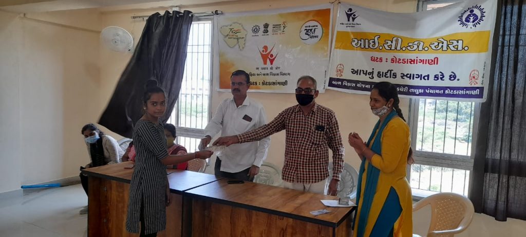 કોટડાસાંગાણી ખાતે આવેલ આઈ. સી. ડી. એસ. કચેરી દ્વવારા કિશોરીઓ માટે એક રંગોળી સ્પર્ધા નું આયોજન કરાયુ હતું.જેમાં 10 થી વધુ બાળાઓ એ ભાગ લીધો હતો.જેમાં સ્પર્ધા મા વિજેતા થયેલ પ્રથમ.દ્રિતીય. અને તૃતીય.ત્રણેય કિશોરીઓ ને તાલુકા પંચાયત પ્રમુખ અરવિંદભાઈ સિંધવ. તાલુકા વિકાસ અધિકારી હિંગરાજીયા ભાઈ સહીત ના ઓ ના હસ્તે કિશોરીઓ ને રોકડ પુરસ્કાર આપી પોતે આગળ આવે અને આત્મનિર્ભર બને તેવું અંત મા તાલુકા પ્રમુખ દ્વારા જણાવાયું હતું જેમાં આ તકે તાલુકા ના CDPO પૂજાબેન જોશી.સહીત ઉપસ્થિત રહ્યા હતા. જેમાં કાર્યક્રમ ને સફળ બનાવવા મુખ્ય સેવિકા અનસૂયા બેન નીરુબેન.અને મિત્તલ બેન આઈ. સી.ડી.એસ.સ્ટાફ તેમજ વર્કર બહેનો એ ખુબ સારી એવી જહેમત ઉઠાવી હતી.