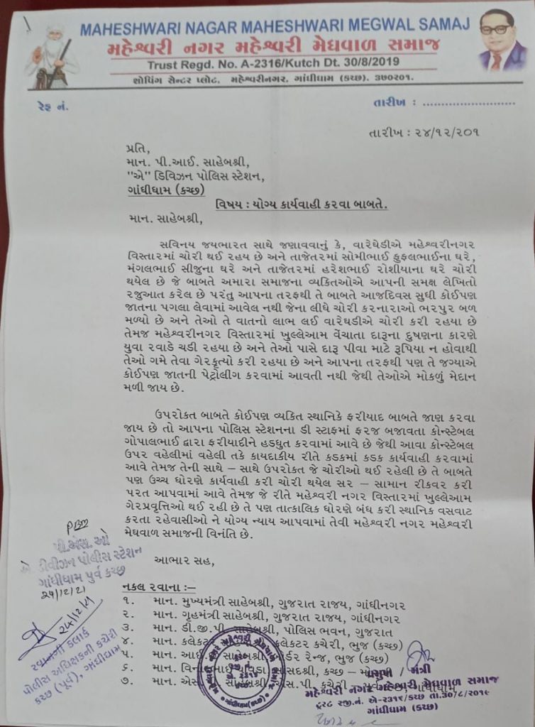 મહેશ્વરીનગરમાં થયેલ ચોરી બાબતે ફરિયાદી જ્યારે પોલીસ સ્ટેશન ગયેલ ત્યારે ગોપાલ મહેશ્વરી નામના એ.એસ.આઇ જણાવેલ કે ” મને સાહેબ કહીને બોલાવવાનું અને મને કોઈ પણ જાતની ઓળખાણ આપવી નહિ અને પોલીસ સ્ટેશનમાં પગ મુકવો નહિ ” આવું ઓરમાયું વર્તન એક એ.એસ.આઇ દ્વારા કરવામાં આવ્યું. ગાંધીધામ “એ” ડિવિઝનના પી.આઈ.શ્રીની સારી કામગીરી પર આ એ.એસ.આઇ એક દાગ જેવું છે.પોલીસ સ્ટેશન જનતા માટે જ છે તો પછી આવા એ.એસ.આઇને શું અધિકાર છે કે આ જનતા પોલીસ સ્ટેશનમાં આવાની મનાઈ કરે છે ? આ સમગ્ર બાબતે પૂર્વ કચ્છ એસ.પી.કન્ટ્રોલ તેમજ સરહદ રેન્જ આઈ.જી.શ્રીના કન્ટ્રોલમાં જાણ કરેલી પણ હવે જોવાનું રહ્યું કે આ બાબતે કોઈ યોગ્ય કાર્યવાહી કરવામાં આવશે કે પછી પોલીસ ખાતું પોતાના કર્મીઓના કુંવર્તન સામે આંખ આડા કાન કરશે ?રિપોર્ટ બાય – રમેશ મહેશ્વરી,ગાંધીધામ