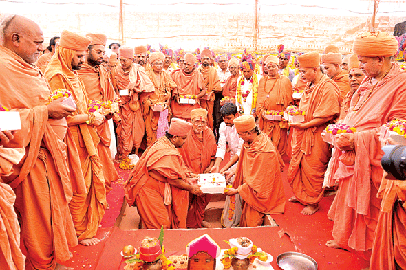 ભુજ શ્રી સ્વામિનારાયણ મંદિરમાં બિરાજમાન મુખ્યદેવને આગામી ૨૦૨૩માં ૨૦૦ વર્ષ પૂર્ણ થવા જઈ રહ્યા છે ત્યારે નરનારાયણ દેવ દ્રિશતાબ્દી મહોત્સવ ભુજના ઉપલક્ષ્યમાં કચ્છનું પ્રાથમ હાઈટેક સેવા આશ્રમ બનાવવા જઈ રહ્યુ છે. જેનું ખાતુમુહૂર્ત આજ ભુજ મંદિરના સ.ગુ. મહંત સ્વામિ ધર્મનંદનદાસજી, સ.ગુ.ઉપમહંત પુરાણી સ્વામિ ભગવદજીવનદાસજી, પાર્ષદવર્ય કોઠારી જાદવજી ભગત, સ્વામિ પ્રેમપ્રકાશદાસજી તેમજ સ્વામિનારાયણ સેવા આશ્રમ કાર્યમાં રૃપિયા ૪ કરોડનું અનુદાન આપનાર આ સંકુલના યજમાન પરબતભાઈ કુંવરજી હાલારીયા, અમરબેન પરબતભાઈ હાલારીયા હસ્તે તેમના પુત્રી સુમિત્રાબેન પરબતભાઈ હાલારીયાના હસ્તે કરવામાં આવ્યુ હતુ.