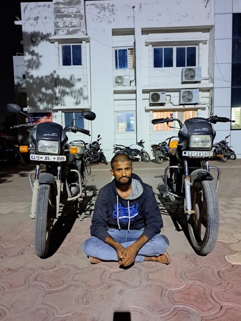 પુર્વ કચ્છ ગાંધીધામ બોર્ડર રેન્જ આઇ.જી.પી.શ્રી જે.આર.મોથલીયા સાહેબશ્રી, સરહદી રેન્જ ભુજ તથા પોલીસ અધિક્ષક સાહેબશ્રી મહેન્દ્ર બગડીયા પૂર્વ કચ્છ, ગાંધીધામનાઓ તરફથી જિલ્લામાં બનતા મિલ્કત સબંધી ગુનાઓના બનાવો શોધી કાઢવા તથા અટકાવવા સારૂ જરૂરી સુચના આપેલ હોઇ જેથી આજરોજ એમ.એન.રાણા પોલીસ ઈન્સ્પેક્ટર એલ.સી.બી. નાઓની આગેવાની માં એલ.સી.બી ટીમ ગાંધીધામ વિસ્તારમાં પેટ્રોલીંગમાં હતી. તે દરમ્યાન ગાંધીધામ ઇમરજન્સી રીસ્પોન્સ સેંટરની પાછળ બાવળની ઝાડીમાંથી આધાર પુરાવા વગરનાં ચોરી કે છળકપટથી મેળવેલ મોટરસાયકલો સાથે નીચે જણાવેલ ઇસમને પકડી પાડી મળી આવેલ મોટરસાયકલો સી.આર.પી.સી.કલમ-૧૦૨ મુજબ કબ્જે કરી આગળની કાર્યવાહી માટે ગાંધીધામ એ ડીવીઝન પોલીસ સ્ટેશનને સોપવામા આવેલ છે.