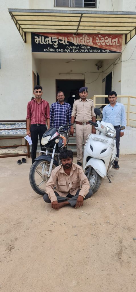 માનકુવા પોલીસ સ્ટેશન તથા માધાપર પોલીસ સ્ટેશન મોટર સાયકલ ચોરીનો ભેદ ઉકેલી આરોપીને પકડી પાડી મુદ્દામાલ રિકવર કરતી માનકુવા પોલીસ