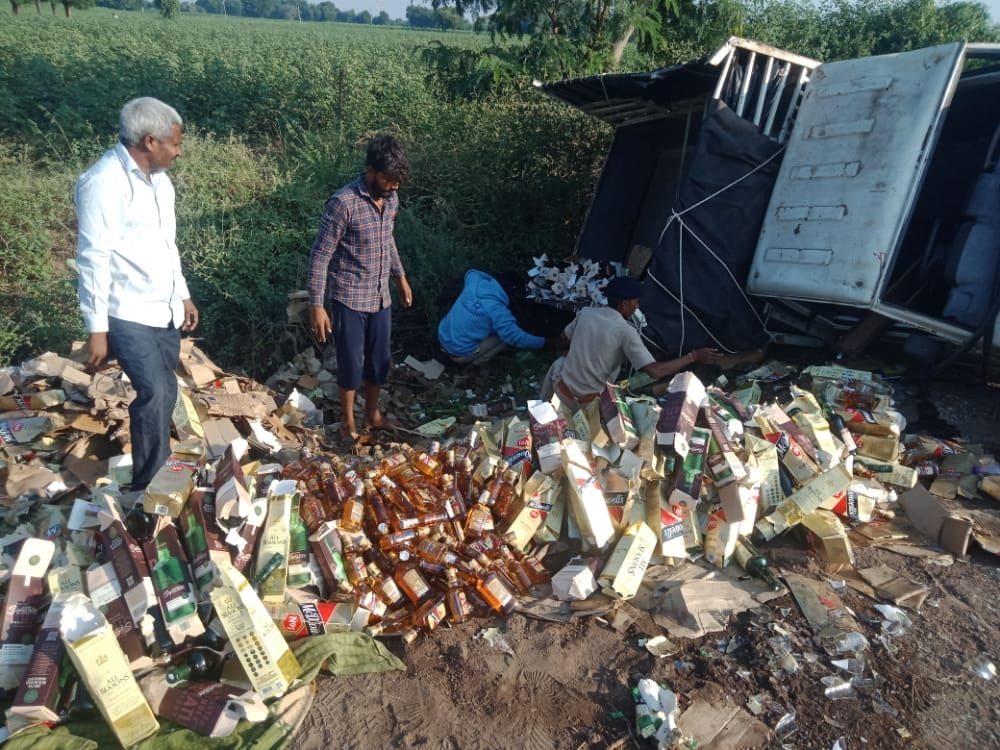 પાળીયાદ ના પીપળીયા ગામ પાસે દારૂ ભરેલી પીક અપ વાન ઉંધી પડી