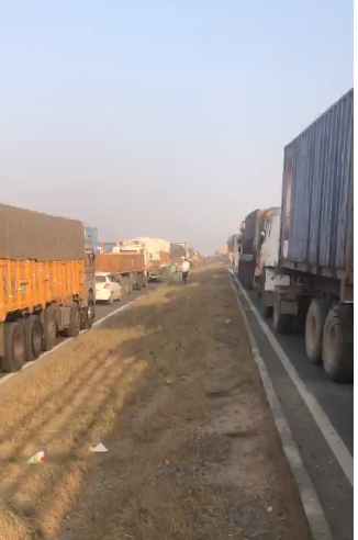 ફરી એક વખત કચ્છ ને રાજ્ય સાથે જોડતા હાઇવે પર સર્જાયો વાહનો ની કતાર લાગી