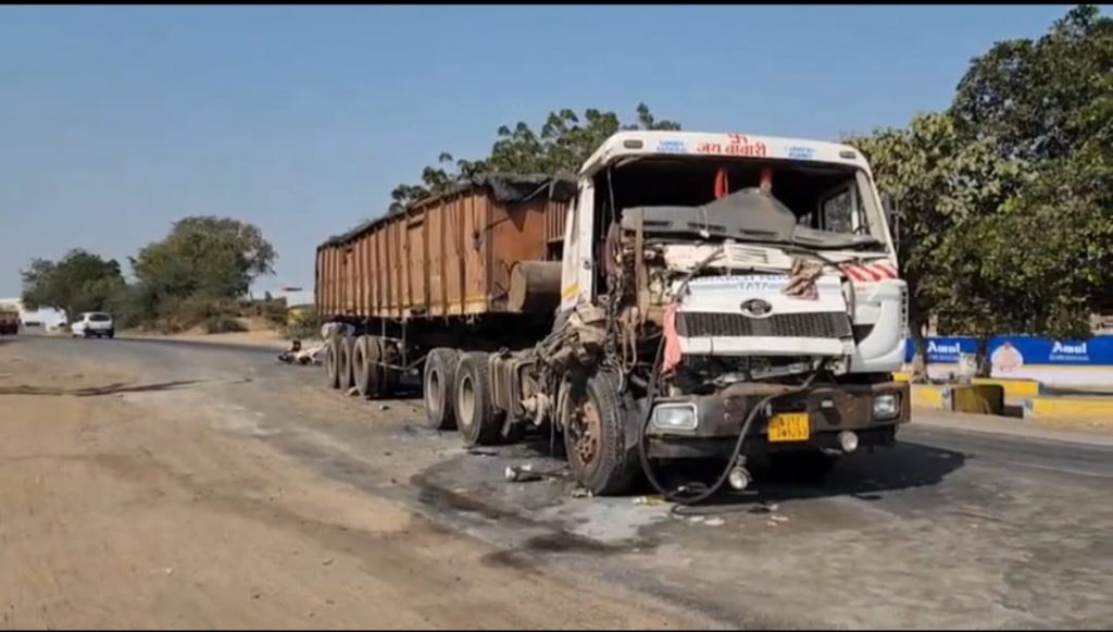 ભુજ કુકમા માં મીઠા ભરેલા ટ્રેલર નો અકસ્માત સર્જાયો