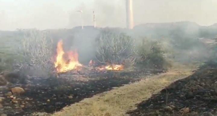લખપતના અમિયા પાસેના સીમાડામાં આગ લાગતા ઘાસ બળીને ખાખ