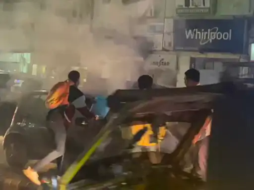 ગાંધીધામની મુખ્ય બજારમાં એક કારમાં એકાએક આગ ભભૂકતા અફરાતફરી મચી