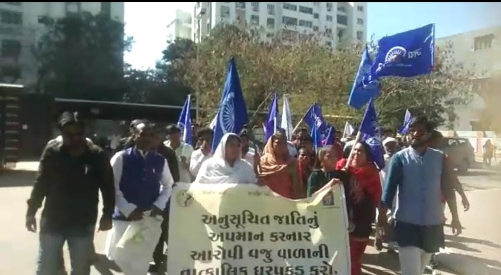 આવેદનપત્ર પાઠવ્યુ ન્યાયની માંગણી સાથે આ મોટી સંખ્યામાં સમાજના આગેવાનો ડો બાબાસાહેબ આંબેડકરની પ્રતિમા હોસ્પિટલચોક ખાતેથી રેલી સ્વરૂપે કલેકટ ૨ કચે ૨ી ખાતે દોડી ગયા હતા અને કલેકટર અણ્ણ મહેશબાબુને લેખીતમાં આવેદનપત્ર પાઠવી આવેદનની કોપી પ્રધાનમંત્રી , મુખ્ય ચૂંટણી કમિશનર સુપ્રિમકોર્ટના મુખ્ય ન્યાયધીશ , હાઈકોર્ટના મુખ્ય ન્યાયધીશ , ગુજરાતના મુખ્યમંત્રી ગૃહમંત્રી અને અનુ.જાતિ આયોગને કાંપી મોકલવામાં આવી હતી