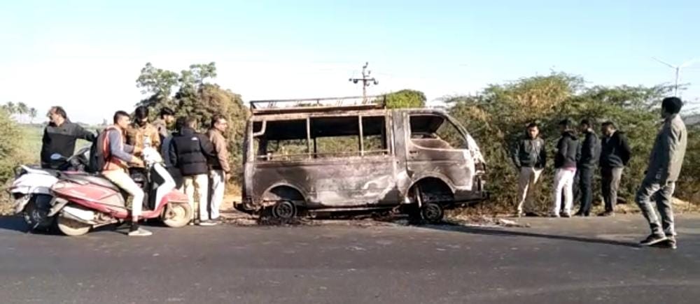 નખત્રાણા અને કોટડા વંચ્ચે છોટા હાથી વાહન મા અચાનક આગ લાગી