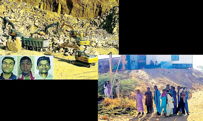 સરહદી પચ્છીમ વિસ્તારમાં પૈયા (રતડિયા)ની પથ્થરની ખાણમાં ખનન દરમ્યાન મોટી ભેખડ ધસી પડતાં એક હિટાચી મશિનનો ભુક્કો બોલી ગયો હતો જ્યારે ત્રણ ટ્રક દબાઇ ગઇ હતી. આ દુર્ઘટનામાં ચાર શ્રમિક દટાયા હતા જેમાં એક અશોક પટેલની લાશ ગઇકાલે મળી આવી હતી અને એક ઘાયલ મળ્યો હતો. અન્ય દટાયેલા બે શ્રમિકને શોધવા ભારે જહેમત બાદ 28 વર્ષીય હિટાચી ઓપરેટર જ્ઞાનેન્દ્રપ્રસાદ કોલ અને 16 વર્ષીય શ્રમિક જયસિંહ બનસ્પતિસિંહની લાશ મળી આવી છે. આમ આ ઘટનાના ત્રણે મૃતક મૂળ મધ્યપ્રદેશના હતા. બપોર બાદ દટાયેલા આ બે શખ્સના મૃતદેહો પોસ્ટમોર્ટમ અર્થે ખાવડા સામૂહિક આરોગ્ય કેન્દ્રમાં લઇ અવાતાં પરિજનોના આક્રંદથી વાતાવરણ ગમગીન બન્યું હતું. હિટાચીના ઓપરેટર તરીકે કામ કરતા જ્ઞાનેન્દ્રપ્રસાદ બે વર્ષથી અહીં જ કામ કરતો હોવાની વિગતો મળી છે. બીજીતરફ, ખાણમાં આવી ગોઝારી દુર્ઘટના બની હોવા છતાં કંપનીના જવાબદાર વ્યક્તિઓ અહીં ન આવતાં મૃતકના પરિજનો તેમજ પચ્છમના આગેવાનોમાં નારાજગી ફેલાઇ છે.દરમ્યાન, સવારે સ્થળની મુલાકાતમાં અન્ય કામ કરતા શ્રમિકો આ ગોઝારી ઘટનાથી ભયભીત જણાયા હતા અને સ્થળ પર રતડિયા ગ્રા.પં.ના સરપંચ જુમાભાઇ અલીમામદ સમાએ આ ઘટનાને દુ:ખદ ગણાવી હતી અને આ ખનનમાં કામ કરતા મજૂરો શ્રમિકોની સુરક્ષાનું શું ? તો સરપંચ જુમાભાઇએ પહેલાં પણ આ ખનનના બ્લાસ્ટરના ધડાકા તેમજ શ્રમિકોની સુરક્ષા વગેરે અંગે રજૂઆત કરી હતી. એમ.કે.સી. મૂળ માલિકના બદલે પાવરનામા તરીકે ત્રીજી પાર્ટી એમ.કે.સી. ચલાવી રહી છે જે શ્રમિકોની સુરક્ષાને લઇને બેદરકારી રખાઇ હોવાનો આક્ષેપ કર્યો હતો. ગોઝારી ઘટના આ પંથકમાં બનતાં સમગ્ર વિસ્તારમાં ગમગીનીનો માહોલ છવાયો છે. સવારમાં આ પંથકના લોકોના ટોળે?ટોળાં જોવા માટે ઉમટી પડતાં પોલીસે લોકોને આ સ્થળે નહીં આવવા અને પાછા જવાની અપીલ કરી હતી. તો રાત્રે ઘટના બન્યા બાદથી પૈયાના રહીમના ઉમર સમા, જુમા અલીમામદ સમા, હાજી અલાના સમા, મુસા મામદ સમા, રસીદ આમદ સમા, અભન જુમા સમા સહિતના લોકો તેમજ ખાવડા પી.એસ.આઇ. શ્રી વાઘેલા અને સ્ટાફ સતત ખડેપગે રહ્યા હતા. તો ભુજ મામલતદાર અને સિનિયર નાયબ મામલતદાર-ખાવડા, ખાણ-ખનિજ ભૂતળ શાત્રી અધિકારી શ્રી બારિયા, રોયલ્ટી ઇન્સ્પેક્ટર શ્રી જોષી, રતડિયામાં કાર્યરત એરફોર્સ સ્ટાફ, વિવિધ કાર્યરત એજન્સીઓના સત્તાવાળા તેમજ વિવિધ ગામના આગેવાનો રાહત અને બચાવની કામગીરીમાં સહયોગી બન્યા હતા.