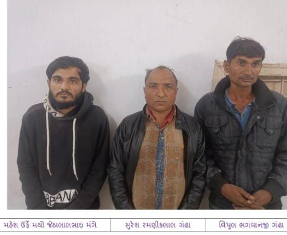 દરમ્યાન એલ,સી.બીના ભગીરથસિંહ સરવૈયા,શીવભદ્રસિંહ જાડેજા, તથા અજયસિંહ ઝાલા ને મળેલ ખાનગી હકિકત આધારે જામનગર તાલુકાના લાવડીયા ગામની સીમમાથી આરોપીઓઃ- (૧) સુરેશ રમણીકલાલ ગંઢા રહે.જામનગર કિશાન જામનગર મુળ ગામ લાવડીયા તા.જી જામનગર (૨) વિપુલ ભગવાનજી ગંઢા રહે.સાધના કોલોની ચાંદની ચોક જામનગર મુળ લાવડીયા તા.જી જામનગર (૩) મહેશ ઉર્ફે મો જેઠાલાલભાઇ મંગે રહે.દિ-પ્લોટ-૫૪ જામનગર નાઓને પકડી પાડી તેઓના કબ્જામાંથી ઇગ્લીશ દારૂ બોટલ નંગ- ૨૪૧૨ તથા મોબાઇલ ફોન મળી કુલ રૂ. ૯,૬૯,૩૦૦ /- ના મુદામાલ કબ્જે મજકુર આરોપીઓ વિરૂધ્ધ પો, ઠંડ કોન્સ. યશપાલસિંહ જાડેજાએ ફરીયાદ રીપોર્ટ આપતા પો.સ.ઇ. શ્રી એસ.પી.ગોહિલ નાઓએ પ્રોહીબીશન ધારા હેઠળ કાયદેસર ની કાર્યવાહી કરેલ છે