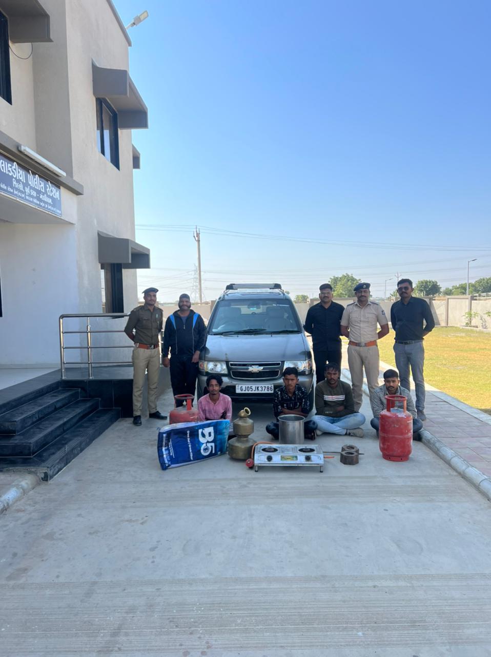 રીકવર કરેલ મુદામાલ : ( ૧ ) ગેસના HP કંપનીના બાટલા નંગ -૨ કિ.રૂ .૪૮૦૦ / ( ૨ ) કનેકશન સાથે ચુલો -૧ કિ.રૂ .૨૦૦૦/ ( ૩ ) પીતળના હાંડા -૨ તથા ક૨સીયા -૨ તથા પાણીની નાની જુની મોટર તથા વજન તોલા -૧૦ કિલાના -૨ તથા એક સ્ટીલની ટાકી તથા ખાંડની દસ્તો તથા કોન્સ તથા લખંડના સળીયા -૦૭ કુલ મુદામાલ કિં.રૂા . ૧૨,૮૦૦ /