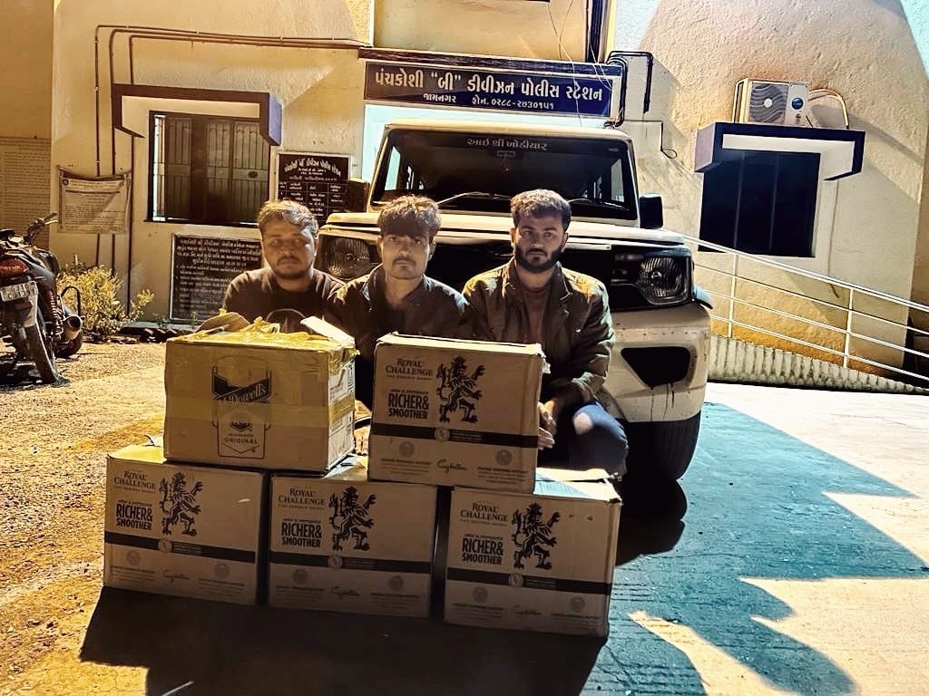 તે દરમ્યાન પંચકોશી “બી” પોલીસ સ્ટેશન ના પો.હેડ.કોન્સ, નિર્મળસિંહ બી જાડેજા તથા હરદેવસિંહ જાડેજા તથા પો.કોન્સ, સુમીતભાઇ શિયાર નાઓને મળેલ હકીકત આધારે લાખાબાવળ ગામથી આગળ સેવન સીજન જવાના રસ્તાથી નવાગામ પાસેથી નં (૧) દિવ્યરાજસિંહ અનોપસિંહ કંચવા રહે. સીક્કા જી.ઇ.બી કોલોની બ્લોક નં ૪૧૧ રૂમ નં ૩ તા.જી.જામનગર તથા નં (૨) ભગીરથસિંહ રૂપસિંહ પરમાર રહે. સીક્કા જી.ઇ.બી કોલોની બ્લોક નં ૪૧૮ રૂમ ને ૧૦ તા.જી.જામનગર તથા નં (3) વિરેન્દ્રસિંહ ઉર્ફે વિશાલ બહાદુરસિંહ કંચવા રહે. સીક્કા જી.ઇ.બી કોલોની બ્લોક નં ૪૧૧ રૂમ નં ૩ તા.જી.જામનગર વાળાઓના કબ્જાની બોલેરો ગાડી રજી નં GJ 10 TX 4917 માથી ભારતીય બનાવટની વિદેશી દારૂની બોટલ નંગ-૫૮ કિ.રૂ.૨૯,૦૦૦/- તથા બોલેરો ગાડી કિ.રૂ ૪,૦૦૦૦૦/ ની મળી કુલ મુદામાલ કિ.રૂ ૪,૨૯,૦૦૦/ સાથે મજકુર ત્રણેય ઇસમોને પકડી પાડેલ હોય જે અંગેની ફરીયાદ પંચ.બી.ડીવી.પો.સ્ટે. ના પો.હેડ.કોન્સ. હરદેવસિંહ જાડેજા નાઓએ આપેલ હોય અને આ કામેની આગળની તપાસ નિર્મળસિંહ બી જાડેજા નાઓ ચલાવી રહ્યા છે.