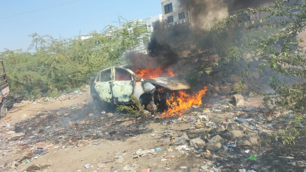 ગીધીધામમાં કારમાં લાગી આગ કાર બળીને ખાખ