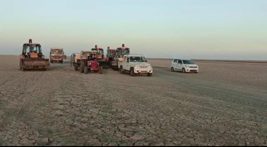 વિશ્વ પ્રસિદ્ધ ધુડખર અભ્યારણ્ય વિસ્તારમાં ગેરકાયદેસર રીતે મીઠા ના અગરો બનાવી ધુડખર અભ્યારણ્ય ની જમીન પર કબજો જમાવી રહેલા ભુ માફિયાઓ એ જાણે બિહાર હોય એ રીતે ધાતક હથિયારો સાથે જમીન પર કબજો જમાવવા માટે રણ વિસ્તારમાં જુથ અથડામણ બંદુક તલવારો અને અન્ય હથિયારો સાથે નો વિડિયો વાયરલ થતાં કાયદા ના રક્ષકો મા દોડધામ મચી ગઈ હતી ત્યારે આ ઘટના અંગે સામખીયારી પોલીસે પગલાં લેવા ની શરુઆત કરી હતી ત્યારે ધુડખર અભયારણ્ય વિસ્તારમાં ગેરકાયદેસર રીતે બનાવવામાં આવેલ મીઠાના કારખાના બંધ કરાવવા ની કાર્યવાહી ધુડખર અભયારણ્ય ના ધ્રાંગધા ડીએફઓ ધવલ ગઢવી ના માર્ગદર્શન હેઠળ આડેસર ધુડખર અભ્યારણ્ય ના રેન્જ ફોરેસ્ટર ઓફીસર એસ. એસ. સારલા એ વન વિભાગ ના સ્ટાફ સાથે કાનમેર ફુલપરા સહિત ના અભ્યારણ્ય વિસ્તારમાં આવેલા રણ મા ગેરકાયદેસર રીતે માટી નો પાળો બનાવતા ખનીજ માફિયાઓ ને જોતા વધારા ના સ્ટાફ ની જરૂર પડતાં ધ્રાંગધ્રા ડીવીઝન ના તમામ ધટના સ્થળ પર બોલાવી દરોડો પાડી ટ્રેકટર નંગ ૧૭ મોટર સાયકલ નંગ ૩ સાથે નવ વ્યક્તિઓ ની ધરપકડ કરી ગુન્હો નોંધવા મા આવ્યો છે કુલ રુપિયા ૭૭ લાખ ૮૯૦૦૦/= નો મુદામાલ કબ્જે કર્યો હતો જેમાં સોલાર પ્લેટ નંગ ૩૦૨ પાવર સપ્લાય તેમજ મોટર પંપ સહિત નો મુદામાલ કબ્જે કર્યો હતો વન વિભાગ દ્વારા ધુડખર અભ્યારણ્ય વિસ્તારમાં સર્જીકલ સ્ટ્રાઇક કરતા ભુ માફિયાઓ મા ફફડાટ વ્યાપી ગયો હતો