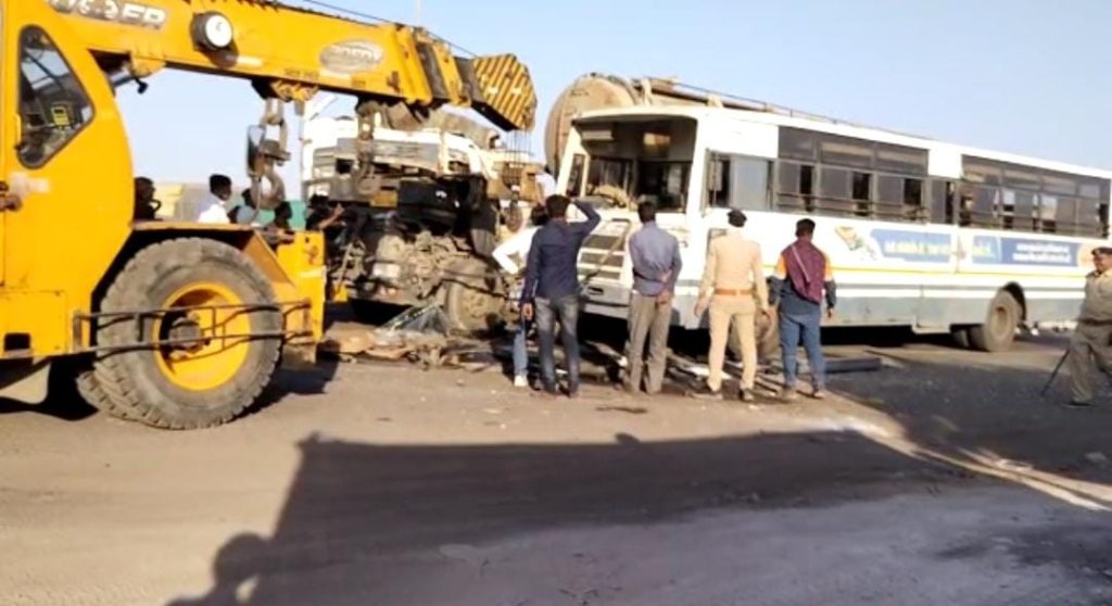 કચ્છની ભાગોળે હરિપર પાસે ટ્રેલર, ટેન્કર અને એસટી બસ વચ્ચે ટ્રિપલ અકસ્માત, એકનું મોત; એક ઘાયલ.