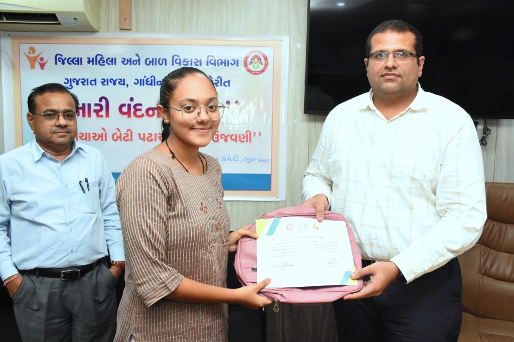 નારી વંદન ઉત્સવની સાપ્તાહિક ઉજવણીના ભાગરૂપે જિલ્લામાં વિશિષ્ટ સિધ્ધિ પ્રાપ્ત કરનાર ૨૧ દીકરીઓનું ભુજ કલેકટર કચેરી ખાતે સન્માન કરાયું