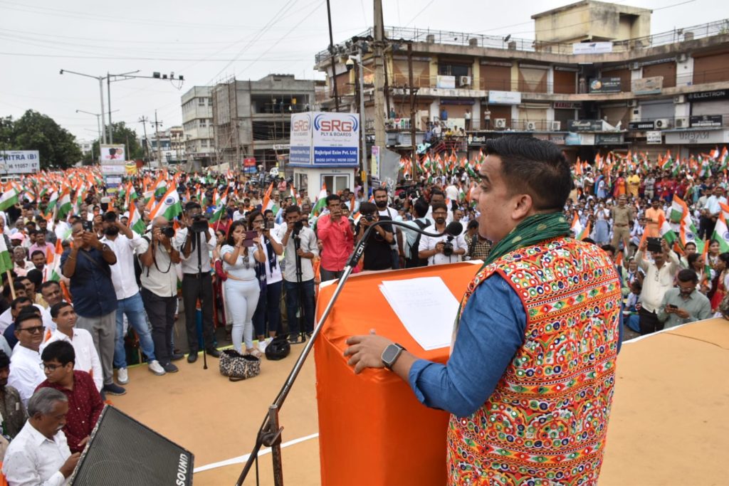 સરહદી જિલ્લા કચ્છના ગાંધીધામ ખાતે યોજાયેલી તિરંગા યાત્રામાં વિવિધ સમાજો, સંસ્થાઓ દ્વારા ગૃહ રાજ્યમંત્રીશ્રીનું સન્માન કરાયું