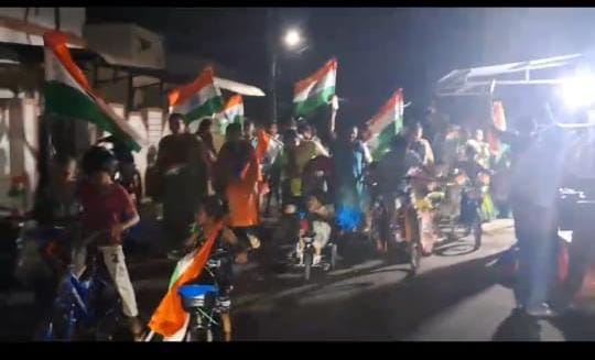 ભુજ. સ્વતંત્રતા પર્વની નિમિતે આઝાદીના અમૃત મહોત્સવરાષ્ટ્રધ્વજ દોરવાની સ્પર્ધા તેમજ દેશભક્તિ ગીતો તેમજ હર ઘર તિરંગા મહોત્સવના ભાગરૂપે શહેરની નવી રાવલ વાળી સ્થિત નરસિંહ મહેતા નગરમાં નાના ભૂલકાઓ પણ ત્રણ પૈડા વાળી સાયકલ દ્વારા તિરંગા યાત્રા નગરમાં ફેરવી હતી. દેશભક્તિના ગીતો સાથે આ નગરયાત્રા નગરની શેરીઓમાં ફરી હતી શેરી નંબર પાંચ ખાતેથી શરૂ થયેલી આ યાત્રામાં બાળકો હોંશ ભેર ત્રણ પૈડા વાળી સાયકલમાં રાષ્ટ્રધ્વજ સાથે દેશભક્તિના ગીતો લલકારી અને તિરંગા યાત્રામાં જોડાયા હતા આ તકે