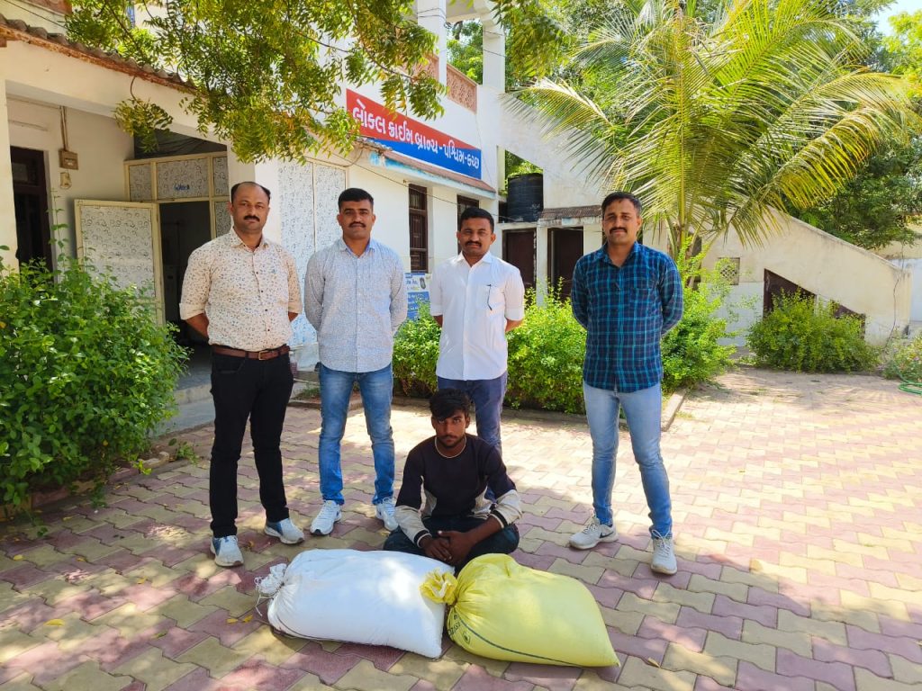 જે અનુસંધાને આજરોજ લોકલ ક્રાઇમ બ્રાન્ચ પશ્ચિમ કચ્છ-ભુજના પોલીસ ઇન્સ્પેકટર એસ.એન.ચુડાસમા સાહેબનાઓના માર્ગદર્શન હેઠળ જીલ્લામાં ચોરીના વધતાં જતાં બનાવો અટકાવવા તેમજ વણશોધાયેલ ગુનાઓ શોધી કાઢવા માટે લોકલ ક્રાઇમ બ્રાન્ચના કર્મચારીઓને સૂચના આપેલ હતી. જે સૂચના મુજબ પોલીસ હેડ કોન્સ્ટેબલ વિરેન્દ્રસિંહ જાડેજા, સુરેન્દ્રસિંહ ઝાલા,મયુરધ્વજસિંહ જાડેજા,નવીનકુમાર જોષી, મહીપાલસિંહ પુરોહીત, શક્તિસિહ ગઢવી તથા રાજેન્દ્રસિંહ રાઠોડ નાઓ ભુજ તાલુકા વિસ્તારમાં પેટ્રોલીગમાં હતા તે દરમ્યાન એ. પોલીસ હેડ કોન્સ્ટેબલ નવીનકુમાર જોષી તથા રાજેન્દ્રસિંહ રાઠોડનાઓને સયુકતે રીતે ખાનગી રાહે બાતમી હકીકત મળેલ કે, “સુખપર ગામનો વિજય મારાજ જે હાલે સુખપર મોચીરાઇ રોડ પર રંજકાના બીજના બાચકા સગેવગે કરવાની ફીરાકમાં છે જે રજકાના બીજના બાચકા તેને ચોરી કે છળકપટ થી મેળવેલ છે” જે બાતમી આધારે વોચમાં રહી તપાસ કરતા મજકુર વિજય ઓમપ્રકાશ મારાજ રહે.ભાણભાદ વિસ્તાર સુખપર તા. ભુજ વાળાના કબ્જામાંથી રજકાનું બીજ ભરેલ બે બાચકા મળી આવેલ જે રજકાના બીજના બાચકા બાબતે આધાર પુરાવાની માગણી કરતા આધાર પુરાવાઓ નહી હોવાનુ જણાવેલ જેથી રંજકાના બીજના બાચકાની ચોરી બાબતે તપાસ કરતા માનકુવા પો.સ્ટે. એ પાર્ટ ગુ.ર.નં.૪૬૧/૨૦૨૩ ઇ.પી.કો.ક.૩૮૦,૪૫૭ મુજબનો ગુનો દાખલ થયેલ હોય