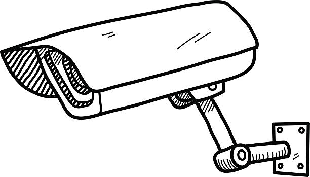 A hand drawn vector doodle illustration of a CCTV camera.