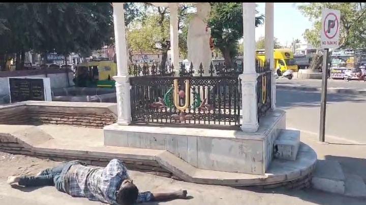 ગાંધીના દેશમાં દારૂ બેફામ : ભુજમાં ગાંધીજીની પ્રતિમાની બાજુમાં જ નશાની હાલતમાં ધૂત શખ્સ જોવા મળ્યો