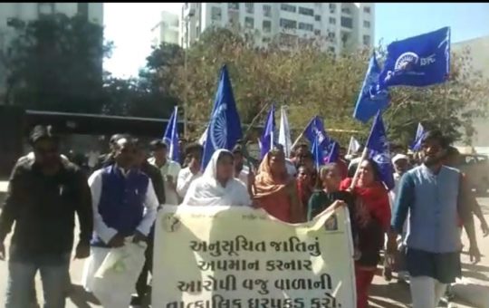 અનુ.જાતિ સમાજનું અપમાન ક્યાંની પૂર્વ ગવર્નર વિરૂધ્ધ પોલીસે ફરિયાદ નહીં નોંધતા કલેકટરને રજૂઆત 0 તે ભીમસેનાના કાર્યક્તઓ અને અનુ.જાતિ આગેવાનોએ મોટી સંખ્યામાં હોસ્પિટલચોક ખાતે બાબાસાહેબ આંબેડકરના સ્ટેચ્યુ પાસેથી રેલી સ્વરૂપે કલેકટર કચેરીએ દોડી જઈ આવેદનપત્ર પાઠવ્યુ