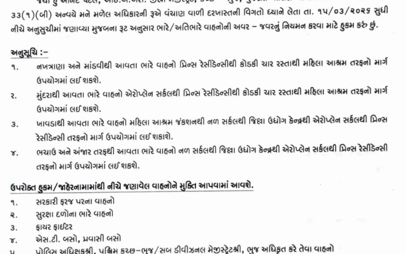 જિલ્લામાં નોવેલ કોરોના વાયરસ કોવીડ-૧૯ મહામારીના વધતા કેસ વચ્ચે સરકારની માર્ગદર્શિકા અનુસાર ભુજ તાલુકાના વરલી-૧ ને તા.૨/૭ સુધી અને સુખપર-૧,...