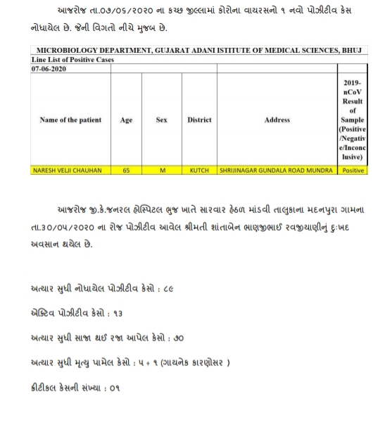 કરછ માં કોરોનાથી વધુ એક મોત : માંડવી ના મદનપુરાની વૃદ્ધાનું ભુજ જીકે માં મોત
