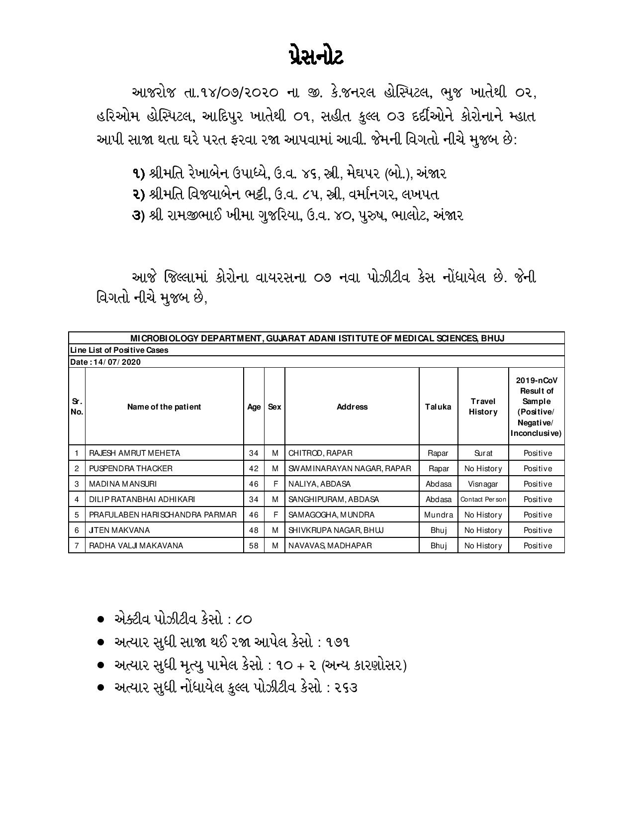 સુરેન્દ્રનગર મહાત્મા ગાંધી સ્મારક જનરલ હોસ્પિટલના મુખ્ય જિલ્લા તબીબી અધિકારીશ્રીની એક અખબારી યાદીમાં જણાવ્યા પ્રમાણે સુરેન્દ્રનગર શહેરના વતની તેજસભાઈ, કાંતિભાઈ, દિનેશભાઈ...